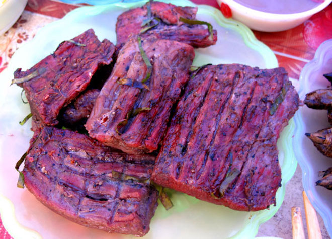 Chỉ nghe cái tên thôi là chúng ta đã tò mò không biết đây là món ăn nào mà lạ lùng thế, nó có ngon không, muốn nếm thử quá. Lam là nướng và nhọ là nhừ, có nghĩa là thịt trâu hoặc thịt bò sau khi được thái lát mỏng sẽ được ướp gia vị riêng như mắc khén, gừng tỏi, bí non, quả cà rừng cuối cùng nướng trên bếp than hồng cho đến khi từng thớ thịt săn lại, thơm lừng.