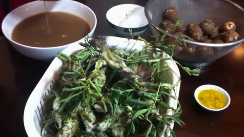 Chuẩn bị nguyên liệu cho món canh cua khoai sọ rau rút